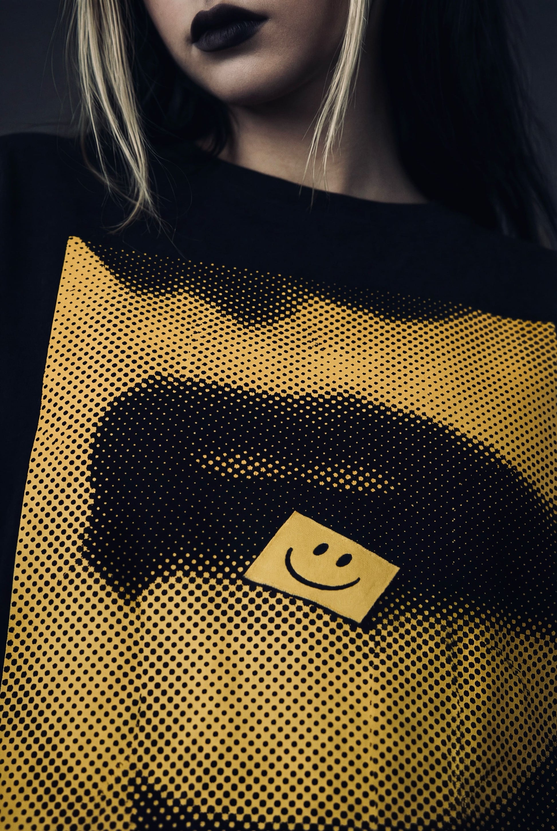 The smiley represents forced emotion a mask people wear to fit expectations.