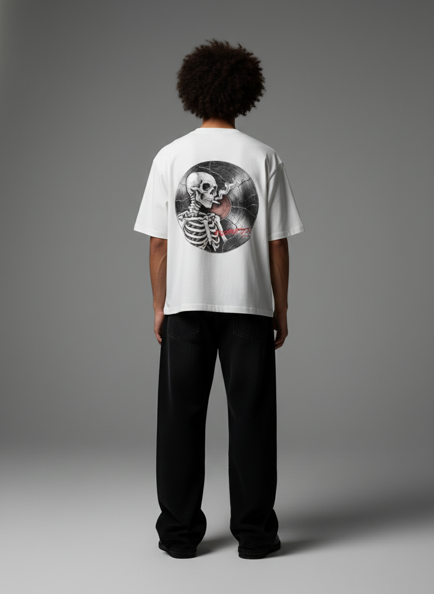 Every ending has a rhythm. Ritual of the Final Beat captures the moment where sound fades into silence  a skeletal drummer suspended in flame, striking one last time. It’s chaos, devotion, and release wrapped into a single frame. This tee is an offering to those who understand that death isn’t quiet  it echoes.